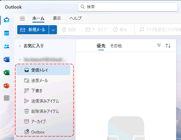 受信・送信等のフォルダー名の英語表示を日本語化する方法