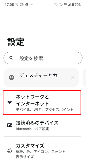 Androidでの操作5で「アクセスポイント名」をタップする。