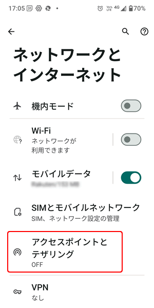 すると「アクセスポイント名」が表示されるのでメモしておく。