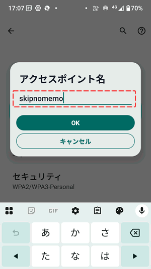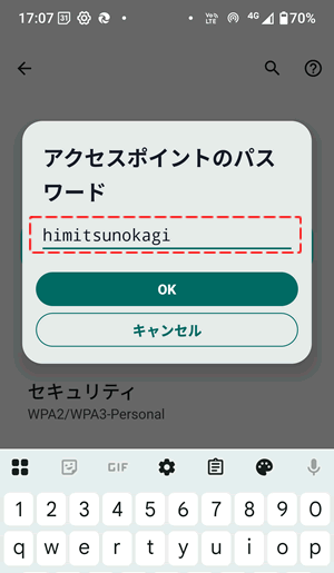 パスワードを変更したいならここで変更し、「OK」をタップする。