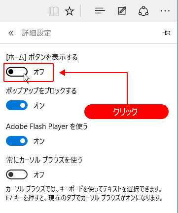 新しいブラウザであるMicrosoft Edgeには、最初から「ホーム」ボタンが表示されていませんね。